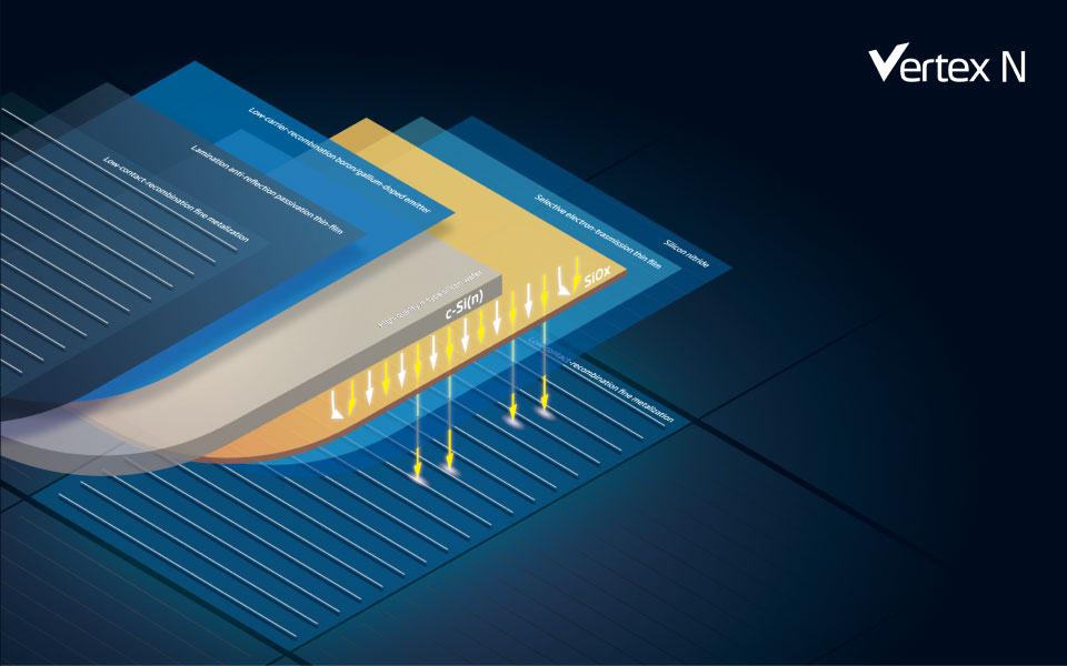 Vertex N 620W+ solarni panel od Trina Solar-a koristi monokristalne ćelije sa bifacial dual-glass tehnologijom koja omogućava veću proizvodnju energije, do 3.5% više u poređenju sa standardnim panelima. Ovaj model ima visok stepen bifacijalnosti, što znači da zadnja strana modula može doseći do 85% stope konverzije snage prednje strane, čime se generiše više energije. Sa niskom stopom degradacije od 1% u prvoj godini i 0.4% godišnje nakon toga, panel nudi visok povrat investicije i dugotrajnu garanciju od 30 godina.